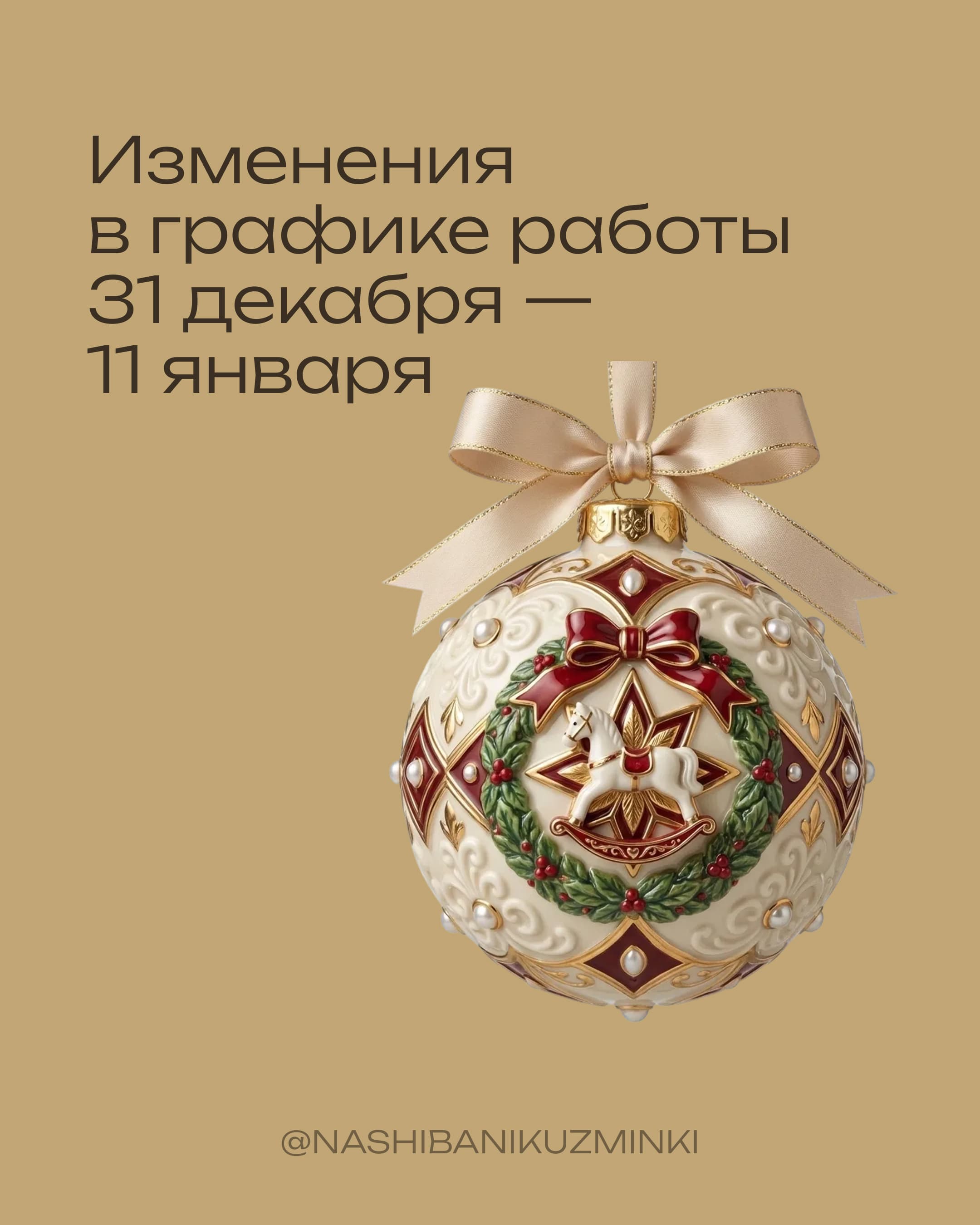 Обращаем ваше внимание на изменения в графике работы «Наших Банях в Кузьминках» в период новогодних праздников.